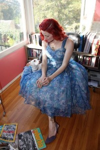 I love and am inspired by tons of old artists: Patsy Cline, Connie Francis, Wanda Jackson, Ricky Nelson, Elvis, Buddy Holly, Janis Martin, Sam Cooke, Jackie Wilson, Clyde McPhatter — really, this list could go on forever. I also love some newer more folky artists: Neko Case, First Aid Kit, The Living Sisters, Lissie, Fleet Foxes, Bon Iver and Karen Elson. There’s lots in between that I keep on heavy rotation: Morrissey and The Smiths, Spoon, Allison Krauss, Amy Winehouse, Adele, The Avett Brothers, Jenny Lewis and Rilo Kiley, Billie Holiday, Bob Dylan, Neil Young, Depeche Mode, Oingo Boingo, X, No Doubt, Ella Fitzgerald, The Doors, Johnny Cash, Mazzy Star, R.E.M., Dolly Parton. Again, this list could go ON FOREVER! I even named one of my cats “Danzig.”