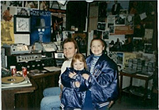 I always tried to make sure I worked the board that night, essentially getting paid to party. Anyway, the owner died in 1991, and the kids tried to keep it going, but it was no go and it soon went out of business…in fact, I quit in a huff because the owner’s daughter couldn’t understand why I had a problem with not getting paid. Below’s a pic of me and my kids in 1990…you can see the ancient board and some of the posters, etc. we had. I need to do a bigger scan someday.