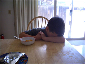 The Boy had been talking about eating this stuff since last weekend, and this morning, his anticipation went into overdrive. Before he’d even eaten breakfast, he was asking about Mr. Boy-Ar-Dee. I heard “When’s lunch?” at least two dozen times.