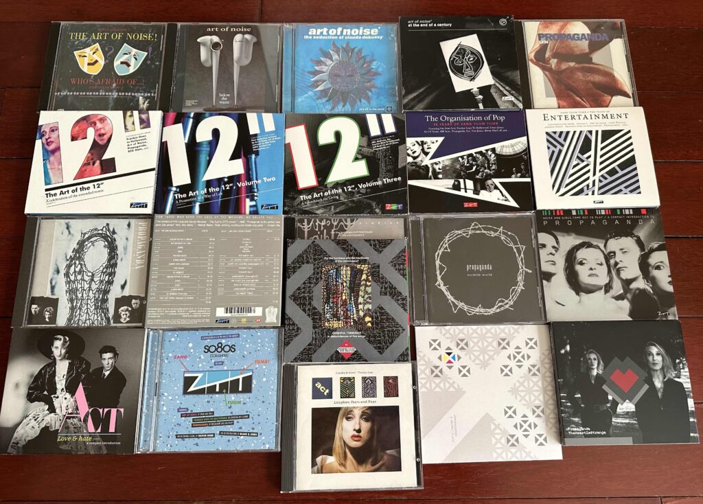 The band was quiet for much of the past 30 years, but the brand was busy re-releasing countless variations on A Secret Wish, including two full-on remix albums (Wishful Thinking and Outside World), an expanded deluxe edition, and countless appearances on a variety of ZTT box sets (pictured below second row). ACT’s sole album, Laughter, Tears, and Rage, was the closest the world ever got to A Second Wish, as Lipson, Morley and a similar design ethos helped craft a brash and pretentious (in all the best uses of the word) indictment of the “Greed is Good” decade. That album has since seen 2 and 3-disc expansions. The spirit of ZTT and Propaganda also live on in the extensive discography of The Art of Noise.