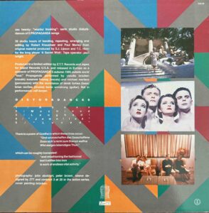 The music, remixes, photography, and record sleeves supporting A Secret Wish were brash, menacing, weird, unpredictable, dark, bright, bold, and in your face. Paul Morley peppered provocative sleeve designs by the London Design Partnership with WTF quotations, phrases, and easter eggs. Menacing and flamboyant band images (many by Anton Corbijn) evoked gothic cinema and high fashion. Most importantly, Dorper and Mertens pushed synths to the absolute limit – instead of providing rhythmic wallpaper to a vocal performance, keys and computers blazed in the mixes like stadium-conquering rock stars, a coke-fueled orchestra, the horn section in hell, and an Andy Warhol fever dream all in one. Propaganda’s alumni kept releasing great music, but never again tapped into that ambition.