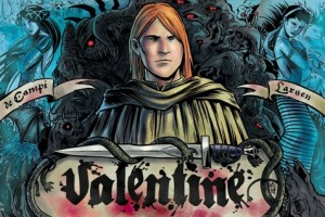 Alex De Campi first showed up on my radar via the sharp and smart 2004-2005 miniseries Smoke, a super-spy saga slash political thriller that hit many right notes, and hit them often and true. After that, she dabbled in manga, then abandoned print comics for the world of music video direction, where she’s been responsible for several imaginative and clever clips for a number of musical acts, including Amanda Palmer and the Puppini Sisters.  All this time, I’ve been patiently awaiting (note the sarcasm?) for her byline to appear again on something that I could read…and that time has come, only in a different kind of format. Valentine is, as the press release says, a “serialized, digital-first graphic novel that is being translated and published simultaneously in 14 languages”, designed to take advantage of the still-nascent iPhone/Kindle/iPad, etc. technology, available for download to the protable reading device of your choice, or it can be read online via your browser. A print collection is planned eventually, but that would seem to be down the road. It’s the story of one Valentine Renaud, a soldier in World War I, fighting against the Russian Cossacks for the French. He and a compatriot are survivors of a battle in dead-of-winter Russia, and as they seek the rest of their platoon they encounter a older fellow with a dying female companion, and a task for them to undertake, namely, to carry a bundled sword to a certain party at all costs…and thus the adventure begins.