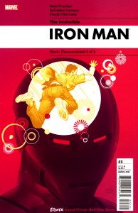 I’m not quite as enthusiastic about the art; there’s a certain stiffness to Larocca’s sometimes underdrawn figures that calls attention to itself more often as not. Still, he does keep the action moving along  at a decent enough clip, with good layouts and staging, so he gets a pass. Fraction’s run on Iron Man is well worth your time; you probably won’t want to start with this particular single issue, though. The first two arcs are collected, and I’m sure this one will be soon as well. Recommended, especially if you liked the Downey film.