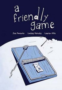 Two bored young kids discover a dead mouse caught in a trap, find themselves fascinated, and eventually begin to kill and dissect various dumb creatures in ascending degree of size, ascribing points for each kill, as they get older. Eventually, one of them grows a conscience and draws the line at killing a puppy; his partner in cruelty doesn’t take it well, and soon is trapping and killing bigger game, much to the horror and reluctance of the other. Despite being a bit on-the-nose and declining to take the opportunity to really get to the bottom of what is causing the kids, especially the one that gets into the game a bit too fervently, to behave this way (we get some vague, unsatisfying looks at their parents, nothing consequential until they take their intended place as possible victims), this story does become quite involving in a B-movie psycho-thriller fashion until wussing out in the end, and leaving me with the distinct impression that I was supposed to have some doubt in my mind as to which of the pair was in the wrong. This feel is enhanced by the black-and-white art, which makes up in mood what it lacks in actual drawing skills- I’m reminded of work by people like Alex (Tricked, Too Cool to Be Forgotten) Robinson or Mike (Freddie and Me) Dawson, except they’re not quite at the same skill level yet. They draw a cute puppy, though, or perhaps I’m just getting soft in my advancing years. (A review copy was provided by the publisher)