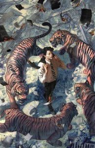 Stone is a literary agent who happens to also be a pathological liar- he lies to his clients, playing one against the other; he lies to the woman he’s sleeping with, telling her what she wants to hear; he lies to his friends, regaling them with stories of sexual conquests and big money. He’s also very good at it, and is successful in spite of it all…he learned, from an early age, how to bullshit convincingly and get away with anything. Things all change for him, though, when he happens to be walking down the street that fateful day in the September of 2001 and is right there for the fall of the Twin Towers. Something compels him to enter one of the buildings as everyone else rushes out, and he sees a fiery vison (because he’s named Shadrach, y’see, one of the Biblical furnace guys. Or is that one of the guys in the Sly and the Family (Shadrach) Stone song? Whatever). When he comes to, he’s not only alive but is some distance from Ground Zero; he also can’t tell a lie anymore, think about telling a lie anymore, or even be around someone who is without experiencing extreme pain in his gulliver. Then things get weirder- he finds out that his girlfriend is part of a secret group who deals with the consequences of lies that are told (they take on a life of their own, y’see), and they want to recruit Stone, since his state as a world-class liar who can’t do so anymore qualifies him for the job. If this sounds like Liar Liar meets The Matrix, well…it does. But Moore is a good writer, and he does a good job of establishing Stone’s personality, giving him enough charisma that we want to know what happens to him, even though we may not like him all that much. I remember Moore mostly as an editor (One of my all-time favorite comics series is Gemini Blood, which Moore edited while overseeing the short-lived DC/Helix line); I know he’s written a fair amount of things since that long-ago gig (I seem to recall a run on Firestorm a couple of years ago, among other things), but I haven’t read much, if any, of it so I can’t really tell if this is typical of his output. I’m a bit more familiar with artist Proctor, whom I last saw doing the art honors on Larry Young’s Black Diamond for AiT/PlanetLar a couple of years ago. He’s improved a bit since then, sawed off some of the rough edges and smoothed out his storytelling…but much of what he does, his whole style in fact, still looks like traced photographs, creating what I call a Waking Life effect; it tells the story, and does it pretty well, but my eye is constantly being distracted by stiff poses and odd facial expressions. It kinda reminds me a lot of Tony (Ex Machina, Starman) Harris, too. Shadrach Stone is derivative of several things, but they’re rehashed skillfully, and hopefully we’ll get more down the road. Wanna make special note of the cover above, by Jon Foster; it’s beautifully done and very clever, and if I was running things at Vertigo these days I’d be commissioning some covers from him ASAP. (A copy of this book was provided for review purposes by the publisher)