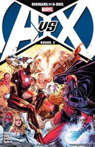 Big Two event comics have become like a poker game- I’ll see your 52 and raise you one Civil War; I’ll see your Fear Itself with one New 52 company-wide relaunch. Here’s Marvel’s reaction to that, featuring most of the high-profile Marvel stable in the sort of internecine conflict that Stan and Jack would have done in one issue, or at least a 25 cent giant-size annual, back in the day. No matter; this is Cape Comics As They Are Now, and all we can do is follow along, or ignore if needs must, but this ship’s not changing course anytime soon. So…what do we have here?