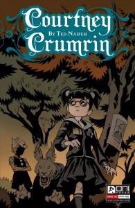 I’ve been enjoying the exploits of Naifeh’s surly young noseless tweenage witch since the beginning; he has created an interesting and typically dark world and populated it with a host of interesting characters and situations, to be sure inspired by many similar ideas that have come before, but Naifeh has the chops to put his own spin on them and make them into his own. Previous installments have been in black and white, and have not only shown us the ups and downs of Courtney’s coming-of-age as a young magic practitioner with an old and powerful family heritage, but also have given us some insight on her reclusive Uncle Aloysius, who is quite the power in his own right. This time out, a new family moves next to Courtney and her uncle, and that brings a new friend of sorts named Holly, another alienated gotily-attired tweenager who takes up with CC at first out of curiousity, but soon gets a glimpse into what her neighbor is all about (and even worse) persuades her to teach her magic, which she uses to her own ends in such a selfish, threatening way that our girl is obliged to teach her a lesson, the nature of which kinda reminded me that the lead isn’t always the nicest little magic user out there. The “next issue” page shows that there will be more to come between the two, so stay tuned- Holly Hart may turn out to be the clear-cut antagonist that this series hasn’t really had, or perhaps an ally, who knows. As far as the art goes, the most noteworthy thing this time out is Ted’s typically moody work in color, which is rarer than you think- most of the time his stuff has appeared in black and white, which it’s ideally suited for. That said, Warren Wucinich’s subdued Vertigoesque tones, all olive greens, mottled browns and purples and gray, do fit the subject matter well. One wishes other colors besides aqua/teal were used for contrast, but that’s not a big problem. Anyway, after a too-long hiatus, it’s good to have the focus back on Courtney and I look forward to seeing what Naifeh does to further flesh out hew world.