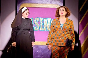 Finally, Disaster! Talent of the Tony-level caliber of Faith Prince, Roger Bart, Kerry Butler, and Kevin Chamberlin isn’t tested by a show on the level of a 40-year-old Carol Burnett sketch. Sprinkled with disco tunes, it’s a jukebox parody of 70s disaster movies, about a Manhattan floating casino becoming unmoored and unhinged, and while I applaud the creators for working into the mix the obscure Killer Fish (about piranhas) it doesn’t do more over two acts what Burnett and friends did in a few minutes. That said, Jennifer Simard (who received a Drama Desk nomination for an Off Broadway incarnation) is a riot as a nun with a gambling addiction, and her rendition of “Torn Between Two Lovers” brings the house down. So this threadbare new musical doesn’t, totally, live down to its title.