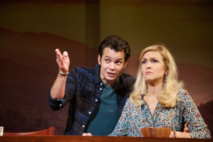 Off Broadway the Roundabout has also resurrected The Robber Bridegroom, which ran just long enough in 1976-1977 to win star Barry Bostwick a Tony. Book and lyrics writer Alfred Uhry would have a much bigger hit with Driving Miss Daisy, but the musical has proved a regional favorite. As they did with Bloody Bloody Andrew Jackson, director Alex Timbers and set designer Donyale Werle have gone all in with the down home cracker American trappings, transforming the stage into a Mississippi lodge, where traveling players enact the star-crossed shenanigans of a Eudora Welty short story set in the 18th century. If your taste runs to Southern-fried silliness, deftly delivered, this one’s for you. Even if “antic” doesn’t float your boat, there’s enjoyment to be had in a fable about a backwoods bandit semi-reformed by love among the upper crust, notably in carb-rich performances by lead Steven Pasquale (who most recently played Mark Fuhrman in American Crime Story: The People v. O.J. Simpson) and Leslie Kritzer as a scheming stepmother. The disembodied head jokes split between a pair of brotherly bad guys made me chuckle.