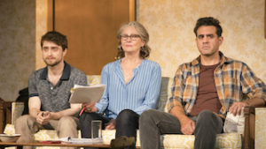 Somewhere between the season highlight of The Ferryman and the dross of King Kong: The Musical is The Lifespan of a Fact, a play that an unheard-of three writers (Jeremy Kareken, David Murrell, and Gordon Farrell) have arranged for three actors (Daniel Radcliffe, Bobby Cannavale, and Cherry Jones). Based on a marathon session of magazine fact-checking that has become legend in the annals of magazine fact-checking lore, this will have much to delight you if you’re a fact-checking fanatic, as every assertion made by a truthy scribe is scrutinized by a freelancer for whom the actual truth is sacrosanct. If you’re not, well, there’s Cannavale as the macho author, Radcliffe as the dweeby fact-checker who flies to Las Vegas to buttonhole him, and Jones as the exasperated editor, all good company for 87 minutes. (Not the 85 minutes I read in other reviews; I checked.)