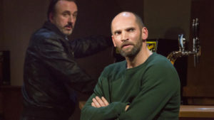 What ensues is a ferocious back and forth, pungently written, tautly directed (by Jimmy Fay), and delivered with a muscular clarity by the two performers. (Robert Zawadzki plays the bartender, a Polish immigrant who observes the conversation, and interjects some humor.) Time has not healed old wounds, and the terrors of the past are only a heartbeat away for both men. Yet the hearts still beat. Can there be a reckoning, or reconciliation? Or is bitterness the only path as the Troubles recede? Quietly, a gem of a play, asks important questions, and doesn’t duck from confronting its audience.