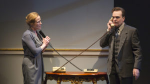 A happier end may be in store for Oslo, the play. Still, like those Oscar-nominated movies that can’t quite crack the winner’s circle, I can’t imagine wanting to revisit it. The author, J.T. Rogers, writes about big subjects of recent import–Rwanda (The Overwhelming), Afghanistan (Blood and Gifts). Here his subject is the Oslo Peace Accords, signed in 1993 by the Israelis and Palestinians after long and rancorous secret negotiations in Norway. As in Privacy, the leads, Tony winners Jefferson Mayes and Jennifer Ehle, essentially host the show, as the married tacticians who must summon every ounce of diplomacy they can muster to keep the talks going. Ehle dispenses exposition, Mayes keeps a stiff upper lip, Norwegian-style, and both are wasted as lesser actors hew to stereotype as the squabbling parties. Rogers pens a few clever-ish one-liners for the performers to lob at us to hold our interest. It didn’t hold mine–I’ve seen this movie before, a weighty historical subject filled with hard truths that are softened by banter and uplift, and the three acts dragged on as much as the Oslo sessions must have for the participants. Part of it was the design, or the lack thereof–there’s minimal, and there’s a table, chairs, dim lighting, and some projections, as seen, or hard to see, here. The director, Bartlett Sher, and his creative team have done far better at Lincoln Center, with more opulent material to be sure (South Pacific, The King and I). Yet their contributions don’t help the show shake its FAQ quality, which it shares with Rogers’ other well-intentioned, yet tedious, work.