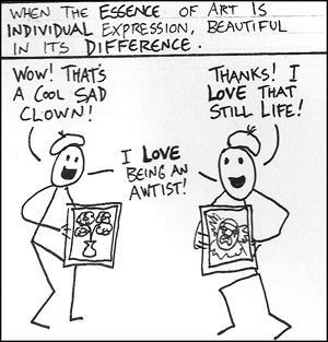 The idea appealed to me immediately. Like NaNoWriMo, the 24HC uses a hard deadline to spur creativity; for most of us, it’s the closest we’ll ever come to being forced to make art at gunpoint. And I liked the unreasonable stay-up-all-night requirement. Sleeplessness is something of a mystical state itself, and very much in keeping with the Surrealist methods of (to steal a phrase from the forefather Rimbaud) ”deliberate derangement of the senses.” Best of all, the fact that I can’t draw for beans was (from a Surrealist point of view, anyway) a bonus, since anything I produced was unlikely to be contaminated by ”proper” technique.