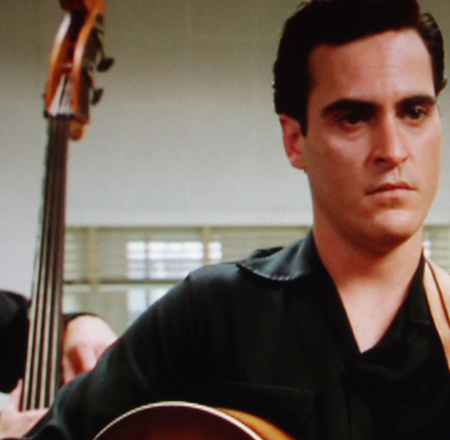 And in the performance that follows, we see timid John R. Cash transform, before our eyes, into JOHNNY. FUCKING. CASH. Or, more accurately, we see Johnny Cash dropping the meek-and-mild act and becoming himself. Or, more accurately still, we see Joaquin Phoenix playing the “Johnny Cash” character he has created, and who in turn is playing the “Johnny Cash” character that he has created, abandoning one mode of performance and adopting another in midstream. It’s a remarkably layered and challenging scene; Phoenix has to make Johnny’s transformation believable and distinct without breaking the illusion, without the making the scene be about Joaquin Phoenix Acting. And he just about manages it, because he’s a virtuoso.