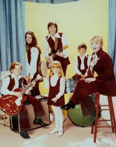 Although the group was a hitmaking machine for only about a year, from late 1970 through early ’72, the show stayed on the air through the end of the 1973-’74 TV season, four seasons in all. All four have been released on DVD. I confess I haven’t rented all of them and hunkered down for a weekend’s viewing, partly because what I remember of these shows from syndication and more recent online viewing is that as drama, episodes of The Partridge Family don’t hold up particularly well. They often play like typical cheesy ’70s sitcom fare, with obvious jokes and predictable plots, slathered with the not-found-in-nature colors so popular back then. But damn, in the kid world of 1970, The Partridge Family was it. And 40 years later, a lot of the music still is.