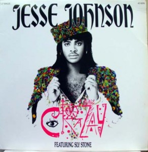 When guitarist Jesse Johnson decided to release his sophomore effort, Shockadelica (1986), he knew who to call to make the album’s first single an event. The former Time guitarist, like many musicians of his era, grew up idolizing Sly, and the two combined to make a fairly memorable video for “Crazay.” The totally Eighties clip is one to remember not just for the fact that Sly looks and sounds fairly lucid, but also for the amazingly quick cuts (I swear, the video made me dizzy), the very Eighties phenomenon of instruments being played in the video that definitely were not played in the song (like live drums, and … a cowbell?), and the numerous costume changes by the band members, topped off by Jesse’s collection of outrageously large hats. With fringe.