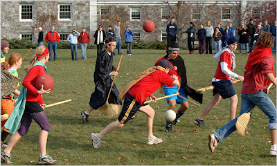 Despite the fearsome omnipotence and bottomless fortune of her empire, widespread and public infringement of Rowling’s copyrights are arguably being perpetrated on an ongoing basis, by large and organized groups, outside in broad daylight! I’m talking, of course, about QUIDDITCH. Get down:
