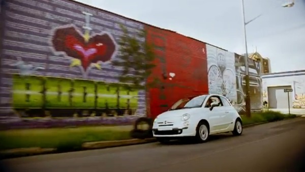 It’s also not the first time someone griped about unauthorized use of popular graffiti. In 2011, Bronx taggers TATS Cru objected to Fiat’s tv ad showing its speef little 500 rolling through the ’hood, ostensibly with Jennifer Lopez behind the wheel. J.Lo wasn’t actually driving (she was in a soundstage out here in LA), but the car did cruise by the Cru’s BRONX mural, like so: