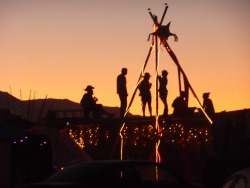 Among the kinds of people I’ve discovered on the playa: Wizened grandparents in their 80s with binoculars around their necks. Yogis and spiritual healers, elementary school teachers, ex-pat nomads, suburban yuppies who left their five kids at home. A Dutch man in his 40s flew out with his 12-year-old son. Billionaire CEOs and world famous architects alongside club kids and frat boys and pagan hippies and steam punks and bluegrass musicians and sculptors and beautiful girls in beautiful costumes. Travelers from Japan, Lebanon, Kenya, New Zealand, Mexico, France… many of them there alone.
