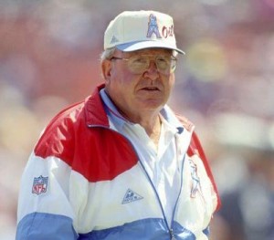 2. Buddy Ryan vs. Kevin Gilbride. During the playoff-bound Houston Oilers’ season finale against the New York Jets, a long-simmering feud between Ryan and Gilbride finally broke through the surface. In a game where his team was leading 14-0 going into halftime, defensive coordinator Ryan got frustrated with offensive Gilbride’s adherence to the run and shoot scheme. Ryan felt that Gilbride’s refusal to run the ball and eat up the clock was putting his defensive players at risk, and when quarterback Cody Carlson fumbled, Ryan was furious and lunged at Gilbride, delivering a glancing blow to his fellow coach’s jaw.
