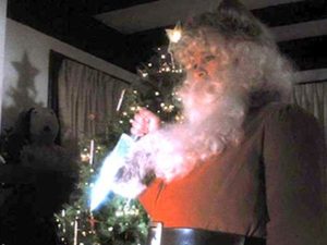 Much of the film’s twisted charm is due to Maggart, who received a Tony nomination in 1970 playing the Hugh Marlowe part in the musicalized All About Eve, Applause, opposite Lauren Bacall. He co-starred in another musical that Comden and Green worked on, Lorelei, with Carol Channing and in 1980, the same year You Better Watch Out came out, played Nancy Allen’s john in Dressed to Kill. Santa has followed him around—he played a Kris Kringle character in a 1995 episode of E.R. and today, at home in Venice, CA, sports a Santa-ish beard. (Playing Santa may be like playing Jesus; you can’t really escape from it.) His kids include singing hellion Fiona Apple and cabaret chanteuse Maude Maggart. Hear Santa sing at his website. (He nervously hums Christmas carols in the movie.)