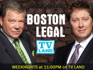 Boston Legal, that fast-paced and irreverent series created by the famed David E. Kelly (The Practice, Ally McBeal) has joined the lineup on TV Land, airing five nights a week at 11:00 PM. The legal dramedy starred James Spader and William Shatner. In the five years it aired on ABC, the show also featured the fine talent of Candice Bergen and John Laroquette, among others. Both Spader and Shatner won Emmys for their performances.