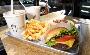 Shake Shack’s patties are smaller than those at Five Guys, but thicker, and cooked medium, so that you can actually taste, you know, the meat (a special, secret blend on which the company holds a trademark). In the interests of full disclosure, I will confess that I haven’t actually sampled the, uh, shakes…but if they’re as good as the frozen custard I inhaled earlier this week—Boston Cream Pie was the flavor of the day—I think they would satisfy any milkshake connoisseur. So is it just a coincidence that, given the choice of a blue-collar, just-the-basics burger chain like Five Guys, or a budget gourmet one like Shake Shack, my taste buds go for the latter? I’m afraid not. Once again I prove myself a hopeless Manhattanite, trying to have it both ways: wanting a relatively quick, simple meal but hoping to be transported to Food Heaven in the process. This doesn’t mean I’ll never deign to eat at Wendy’s, Mickey D’s, or (when in L.A.) In-N-Out ever again…but when I do, the aura of Shake Shack will be hovering over me, reminding me why people are so devoted to it: like NYC, it takes pride in doing a lot of fun stuff really well. Of course, that doesn’t mean its awesomeness remains confined to New York…foodies from Connecticut to Florida to Kuwait (yeah, that Kuwait) can now also enjoy the fare that makes twentysomethings in pencil skirts cheat on their diets!