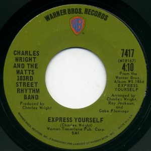 Major success for Charles Wright & the Watts 103rd St. Rhythm Band came with the single “Express Yourself” in 1970. The record reached #3 on the R&B chart, and #12 on the Pop Chart. It has been repeatedly sampled, soundtracked, and commercialized over the years.