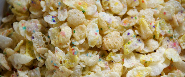 If you haven’t been lucky enough to surf the next wave of deeply inappropriate first meals, I’m going to try and give you an idea of what to expect — but oh my God, you guys, I wish the Web was scratch ‘n’ sniff, because words can’t describe the overpowering blast of cupcakeness that uncoils itself, panther-like, and lodges in your nostrils when you open a box of Cupcake Pebbles. It almost literally punches you in the face. If Betty Crocker and Mike Tyson decided to open a bakery together, I think they would aspire to the visceral scent-clubbing this cereal delivers — it’s so thick, by the time you tear open the bag, you feel like you’ve already eaten several bowls.