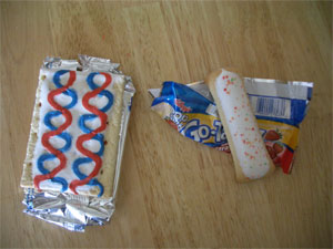Or maybe it has. I’m not sure what those Kellogg pricks are trying to tell us here; the implication seems to be that regular Pop-Tarts should not be eaten raw. Either that, or that they think their customers are the dumbest people in the world. I’d put all my chips on the latter, if it wasn’t for the little message on the side of the Go-Tarts box that says they “SHOULD NOT BE WARMED OR HEATED IN A TOASTER.”