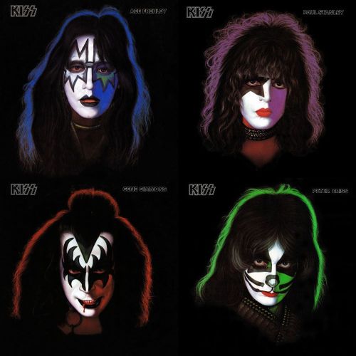 The first, self-titled album was recorded in late ’73 and released in February of ’74. KISS‘s cover is significant in that drummer Peter Criss had his makeup done by a professional makeup artist, giving him a one-time-only, intricate multi-color cat-whisker look he would never have again. Lead guitarist Ace Frehley’s silver-tinged hair was the result of spray paint he applied in order to blend in with the silver-and-black color scheme of the band.