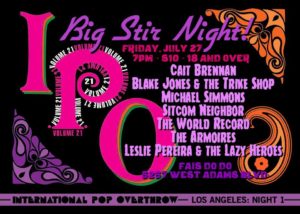 Summertime is a time for music festivals, and one of the most unique of these is the International Pop Overthrow (IPO), a series of gatherings devoted to the multitude of forms that pop music takes. Think anywhere from the late 1950s all the way into the 2000s to get a style-sense. On an average evening at an IPO show, you’ll hear some Rickenbacker jangle guitar and tambourine, maybe some freaky ’80s synths, probably a ton of vocal harmonies, and a great deal of energy.