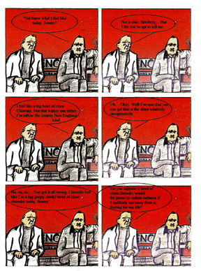 Herzberg and Jimmy (circa 1998) debate cuisine.