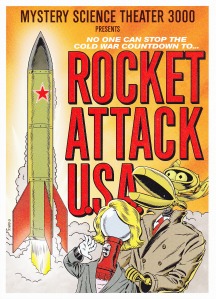 Next we have Rocket Attack U.S.A. This is a nice little bit of ”Communists are going to take over the world” scare stories that were popular during the time. It also opens with the second chapter of the Phantom Creeps serial with Bela Lugosi which, as goofy as it was, did have a really cool looking giant robot. Another odd bit about this episode is that Tom Servo has a cylindrical head, instead of the round gumball machine head he normally sports. The MST3K wiki states that this was an experiment to keep Servo’s head from blocking so much of the screen during the movie. The change only lasted one more episode before going back to the round head we all know and love. Extras include ”Life After MST3K: Trace Beaulieu” Great trivia bit: Beaulieu auditioned for the voice of Jar Jar Binks in Star Wars: Episode I: The Phantom Menace. Would that have made the character more likable? Probably not, but it would have made him more likely to say, ”Bite me!” to Anakin Skywalker.
