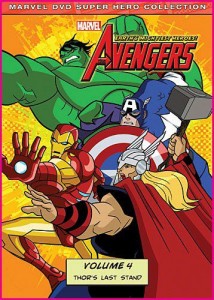 Volume 3, Iron Man Unleashed, follows the 6 episode story arc of the Avengers facing off against Baron Zemo and his Masters of Evil, and then having to defend the earth from a full-scale alien invasion led by Kang the Conqueror, the time-traveling menace bent on destroying all humanity. Volume 4, Thor’s Last Stand, picks up where Volume 3 ends, with Hank Pym (aka Ant Man) building Ultron, the ultimate robot, and Pym’s creation trying to end all humanity (notice a trend here). After defeating Ultron, the Avengers then must battle Thor’s evil half-brother, Loki, who is trying to unleash Asgardian armies on Earth.