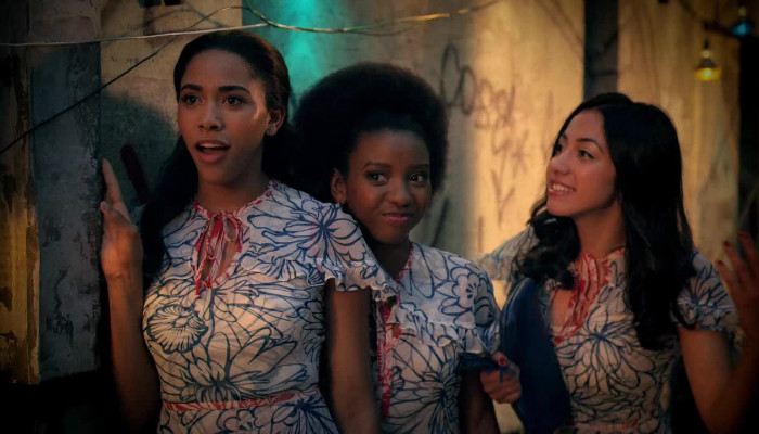 The story is a fairly simple one: Zeke and Mylene are 15-year-old kids from the Bronx whose passion for music is seen as their ticket out their working-class community. The year is 1977, and disco is king in a rotting and decaying New York City. Mylene wants to be the next disco superstar. Zeke is looking for love and stability after the death of his parents and sees Mylene as the person who can give him the love he craves. Zeke is also a poet whose rhymes get him noticed by his teachers at school, but he downplays his talent for fear of being singled out for ridicule by his classmates. Mylene has an overbearing father who also happens to be a pentecostal preacher and a local politico uncle who profits off of shady deals and insurance money made from suspicious apartment fires. Everyone, it seems, is looking to make a buck through legitimate or illegitimate means. Essentially, it’s the dirty rotten game of capitalism — crony, gangster, the music business, and the mom and pop variety. But that’s supposed to be what New York City is about, right? And while Luhrmann and company do present The Bronx in all its hellish glory, it really is filtered through a patina of bright and lavish colors that suggests a fantasy.