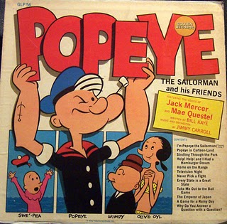 Here’s another album featuring that ever-popular sailor man, Popeye. This one does expand things a bit, since not only do we have Jack Mercer as Popeye, we also have Mae Questel as Olive Oyl and Swee’ Pea. I believe Mercer performs Wimpy as well. If that’s the case, I don’t know why he didn’t do Wimpy on the Popeye’s Zoo album, but it’s nice to have him here.