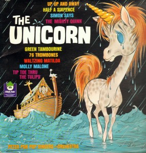The first song we’ll feature is the title tune ”The Unicorn,” made famous by the Irish Rovers. These guys score extra points for not trying to do phony Irish accents (as I’ve heard in other remakes of this song), and distance themselves even more from the original by having a woman sing the lead.
