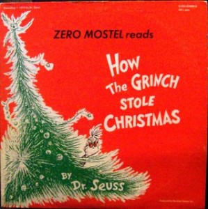 This week I have a special holiday treat for you. It’s the 1975 album ”How the Grinch Stole Christmas”, performed by Zero Mostel. Even though Karloff’s version of The Grinch remains a sentimental favorite for me (aided in no small part by Chuck Jones’s direction), Mostel definitely makes the part his own. While Karloff’s Grinch was sinister (and Jim Carrey’s Grinch was annoying), Mostel’s sounds downright crazy! So take a listen to Zero Mostel’s retelling of ”How the Grinch Stole Christmas” and see what I mean.