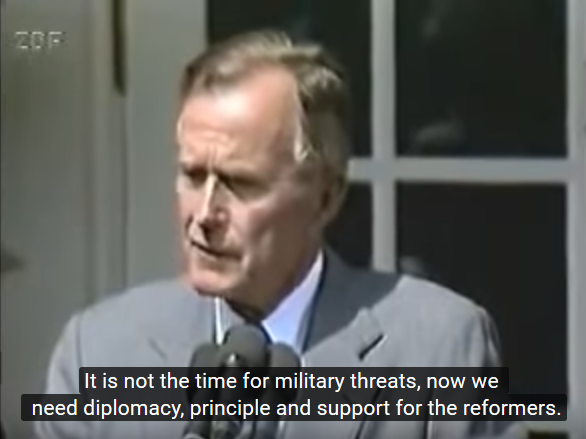 This is a great reminder of how precarious the Cold War truly was. Reform was not a guarantee in the Soviet bloc and one tiny change could have caused the outcome presented here. The new Soviet regime took a lot of cues from the Chinese suppression of activists at Tiananmen Square. Everyone is afraid of this new, alternate reality — much like everyone reacts to the reality we currently find ourselves in.