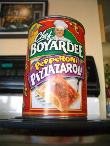 You would think “Pepperoni Pizza Ravioli” would be good enough, or even “Pepperoni Pizzaroli,” but no. They had to add another Z in there, to make it a little more “extreme” or something. Say it with me: pizzazaroli. Up in heaven, the angels are keeping a list of the most retarded food names, and I’m pretty sure “pizzazaroli” is at or near the top.